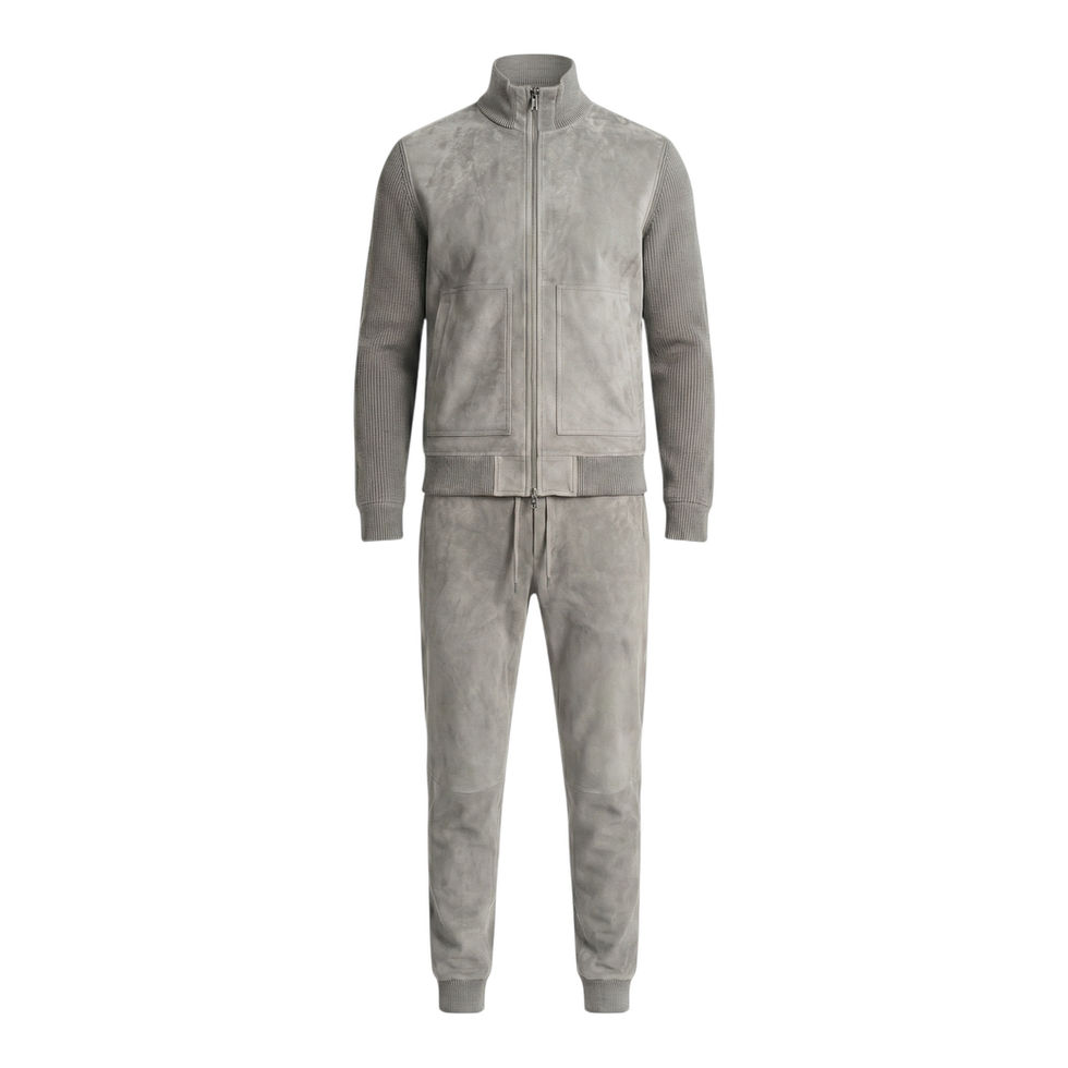Mist grey suede pad ribbed sleeves full sweatsuit